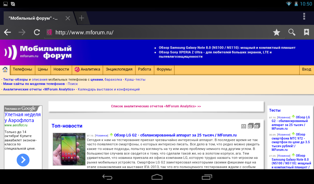 Для доступа к интернету предлагается использовать стандартный браузер. Впрочем, никто не мешает установить Chrome, Firefox, Opera или любой другой браузер по вкусу. Да и с учетом соотношения диагонали и разрешения, масштабировать страницы обычно не требуется.