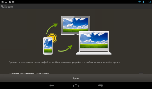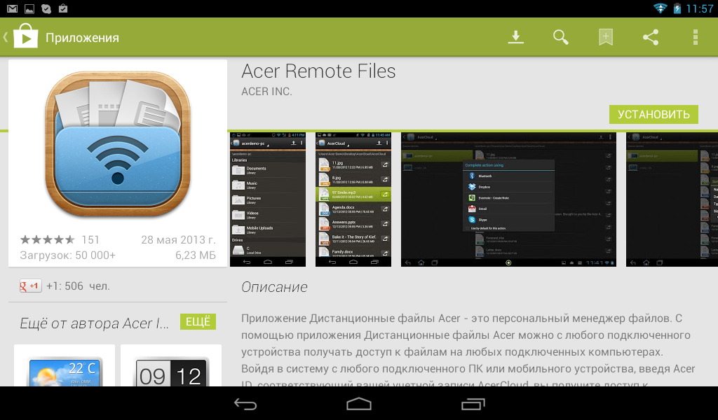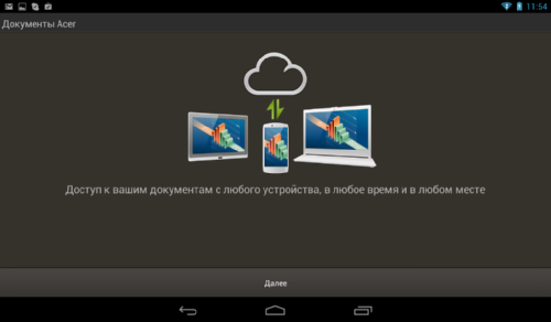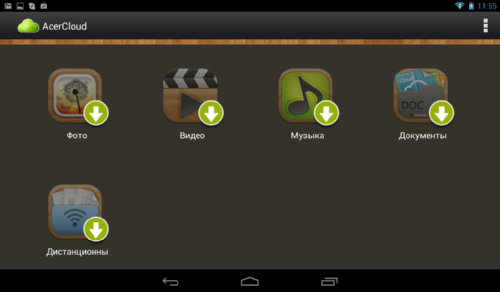 Однако совсем без дополнительных приложений не обошлось. Покупателям Iconia Tab B1-A71 доступен облачный сервис AcerCloud Portal, благодаря которому «вы можете использовать все свои файлы в любом месте, в любое время и на любом устройстве. Загружайте свою любимую музыку дома и слушайте ее в своем телефоне. Слушайте ее в дороге и работайте под нее в офисе. Произведите потрясающее впечатление на клиентов, показав им с планшетного ПК презентацию, подготовленную на настольном компьютере». Также, аналогично другим облачным сервисам, доступна автоматическая выгрузка фотографий в облако. Однако для работы со всеми этими элементами понадобится установить соответствующие приложения.