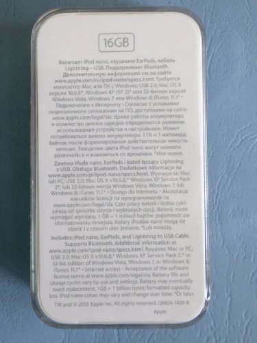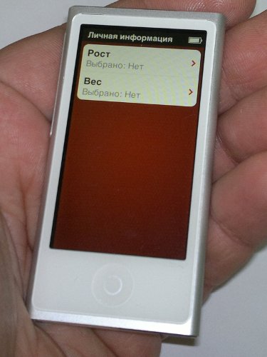 Диагональ экрана iPod nano 7 – 2,5 дюйма, что при разрешении 240x432 точки дает порядка 202 ppi. Не рекорд, но с другой стороны iPod nano 7 – это в первую очередь плеер, а для просмотра видео и фотографий куда лучше подходят iPod Touch, iPhone, iPad и прочие более крупные устройства. В части качества дисплей средний - все видно хорошо, но углы обзора отнюдь не максимальны. С другой стороны, основное назначение экрана iPod nano 7 – управление плеером и для этой задачи примененного в этом девайсе дисплея более чем достаточно. Кстати, поддерживается даже мультитач, хотя единственным его применением в этом устройстве мне видится просмотр фото.