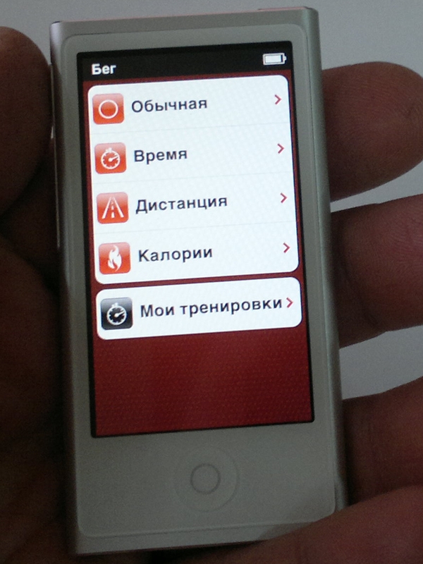 Другое дело занятия спортом, когда хочется чтобы ничего не отвлекало – ни звонки, ни sms, ни обновления социальных сетей. Только ты и музыка. И здесь iPod nano 7, на мой взгляд, очень даже актуален. Тем более что в нем предусмотрено отдельное приложение для учета тренировок, а в продаже есть удобные чехлы на руку.