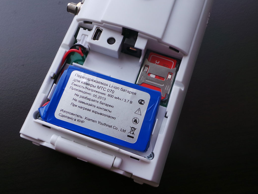 Установили SIM-карту, подключили блок питания, поставили на место батарею, закрепили камеру там, где будем использовать, и включаем – на корпусе вместо красного загорается огонек зеленого цвета, раздается звуковой сигнал. Камера активна.