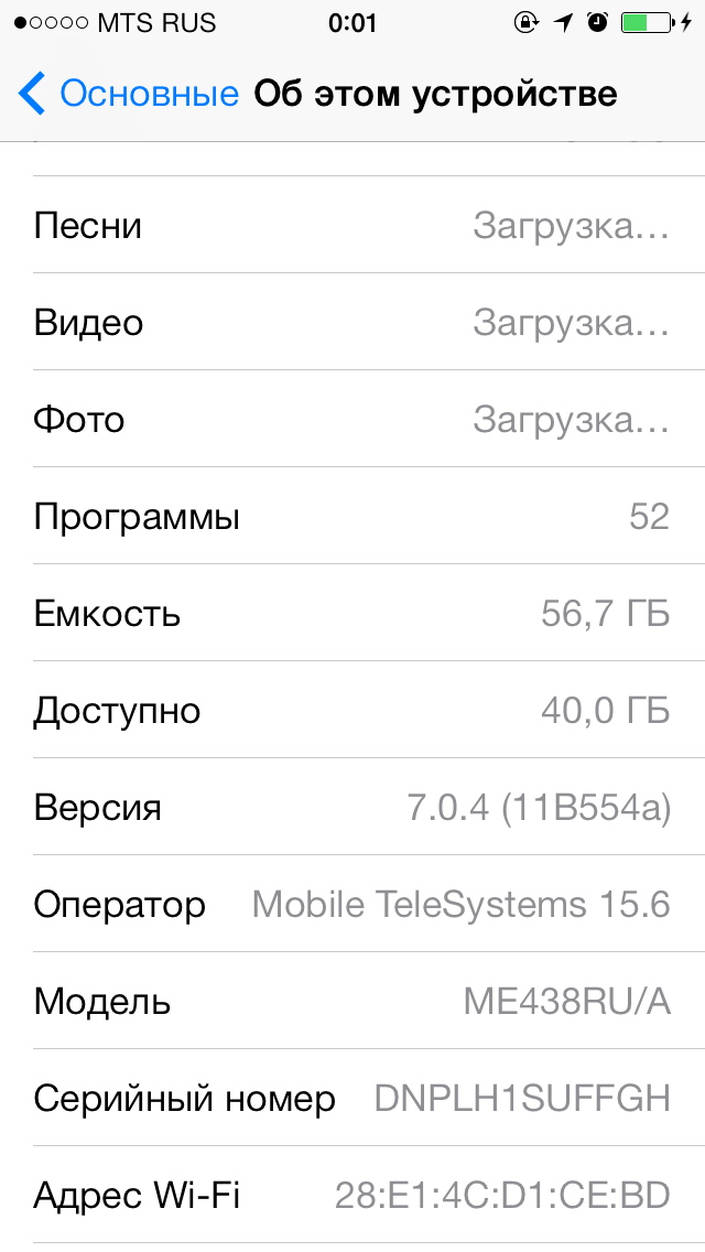 Как заявляют в компании МТС, российские сети 4G поддерживаются на аппаратах «белой» поставки А1457 и А1530. У нас на тесте был смартфон А1530, модель МЕ438RU/A с операционной системой iOS 7.1 прошивка 11D167.