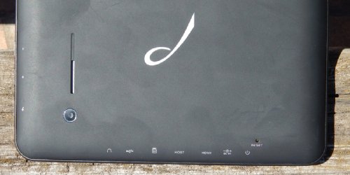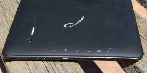 Клавиша включения, а также все разъемы, находятся на верхнем торце. Что интересно, в активе RoverPad Sky 9.7 присутствуют два microUSB-разъема, из которых один предназначен для подключения планшетного ПК к компьютеру, а второй – поддерживает режим USB Host и может использоваться для подключения флэшек и других внешних устройств (через OTG-переходник). Зарядное устройство подключается к отдельному разъему штырькового типа. Впрочем, при желании, зарядить RoverPad Sky 9.7 можно и от зарядного устройства с разъемом microUSB, главное чтобы оно соответствовало по параметрам (5 В, 2 А). Декоративной заглушки для слота microSD не предусмотрено.