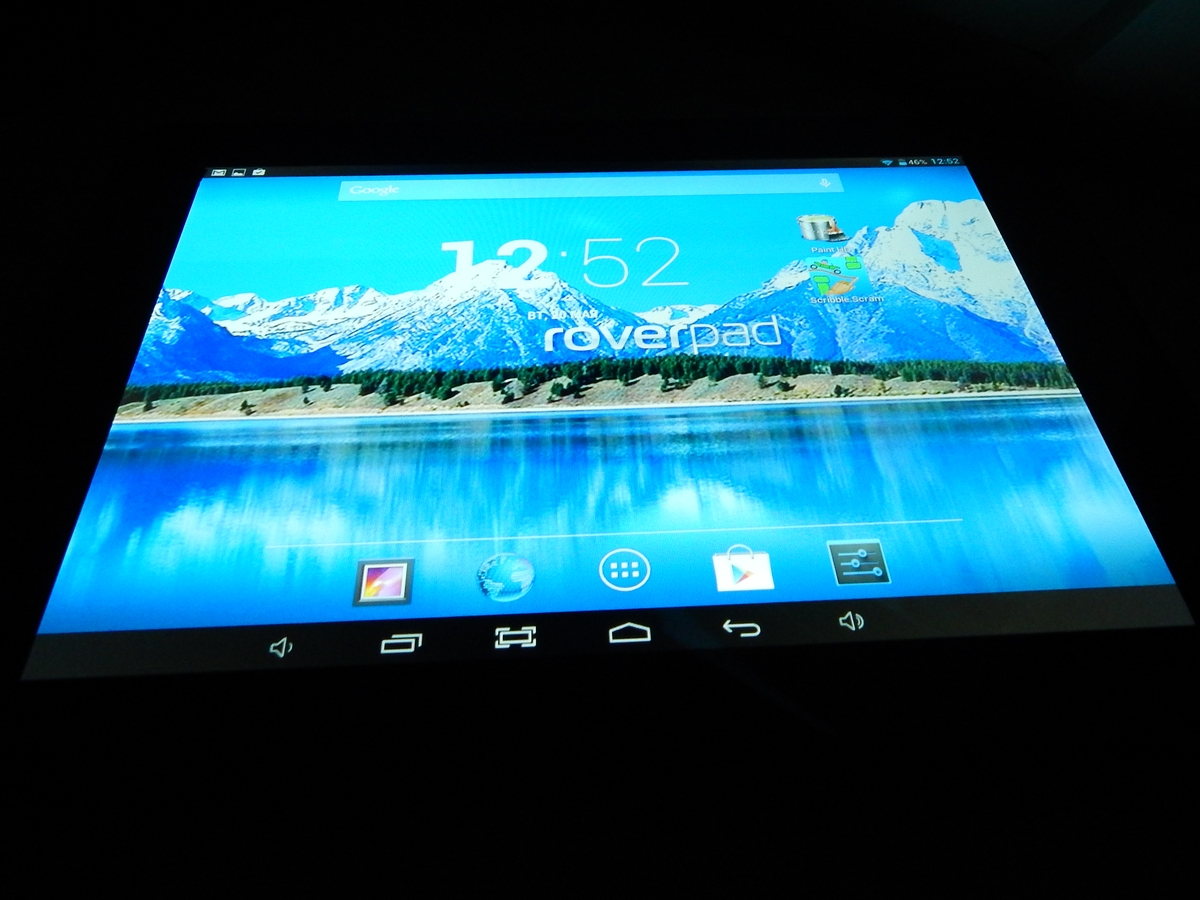 Для планшетных компьютеров своего класса дисплей RoverPad Sky 9.7 можно назвать стандартным. Диагональ – 9,7 дюйма, разрешение – 1024х768 точек. Результирующая плотность изображения низкая (132 ppi), а зернистость картинки видно невооруженным глазом. Зато к качеству самого экрана лично у меня претензий не возникло. Технология изготовления дисплея – IPS, с характерными для нее отличными углами обзора. Вполне достаточен и запас яркости. Причем в помещении яркость экрана смело можно устанавливать в минимальное значение.