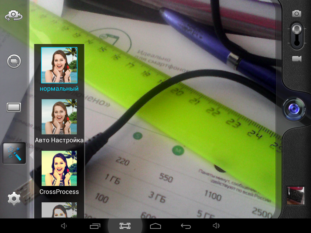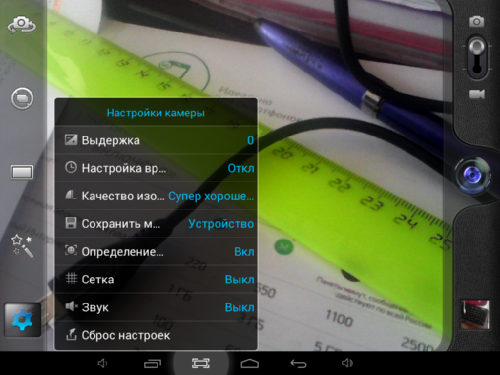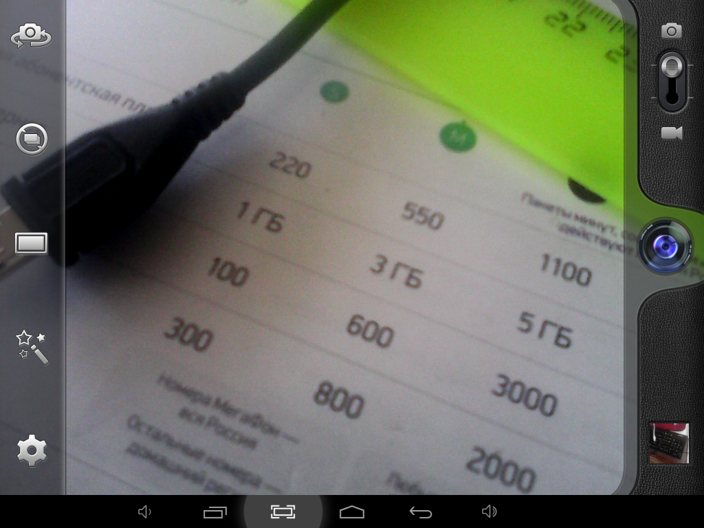 Фоточасть RoverPad Sky 9.7 включает в себя две фотокамеры – 0,3 Мп фронтальную и 2,0 Мп на задней панели. Как и у многих других недорогих планшетных компьютеров фотокамеры RoverPad Sky 9.7 не отличаются особым качеством. Но не все столь печально, как может показаться на первый взгляд. По крайней мере, объявления и подобные объекты на тыловую камеру RoverPad Sky 9.7 запечатлеть можно, а фронтальная камера этого устройства вполне справляется функцией «глазка для Skype». Зато интерфейс камер (в общем-то стандартный для Android 4.2) радует обилием настроек. В частности поддерживается скоростная съемка, режим панорам, разнообразные эффекты и настройка баланса белого. Видеосъемка может вестись в разрешении 480p и 720p