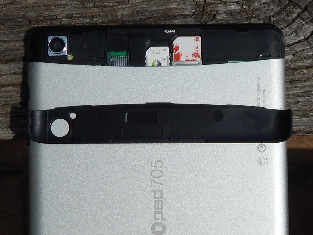 Кстати о 3G-сетях. В отличие от многих конкурентов он оснащен двумя SIM-слотами, один из которых рассчитан на обычную SIM-карту (miniSIM), а второй на microSIM. Причем, слоты не равноценны – для первого SIM-слота поддерживаются 3G-сети, а для второго – только 2G. Хотя, честно говоря, актуальность для планшетного компьютера двух SIM-слотов лично для меня под большим вопросом. Впрочем, никто не мешает использовать TurboPad 705 в качестве большого телефона с двумя SIM-слотами. Если, конечно, вам нравятся столь крупные экраны.