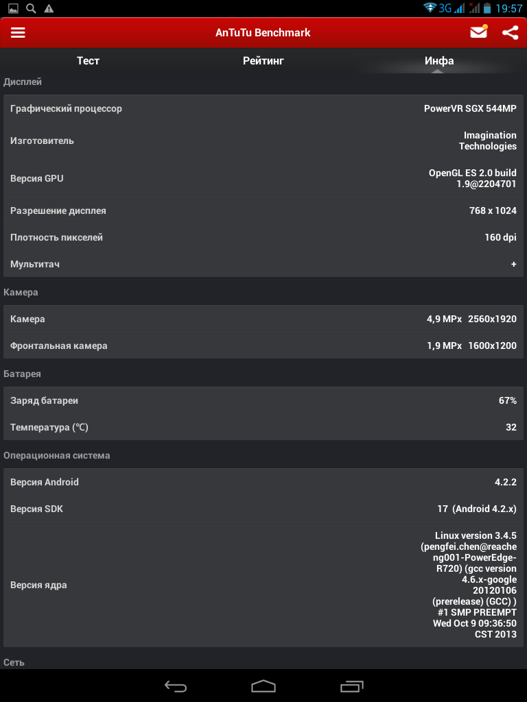 Производительность – на уровне устройств аналогичного класса. Более того, по субъективным ощущениям, интерфейс TurboPad 705 работает быстрее, чем, например, на RoverPad Air S7.85. Бенчмарк AnTuTu охарактеризовал MediaTek MT8389 как: