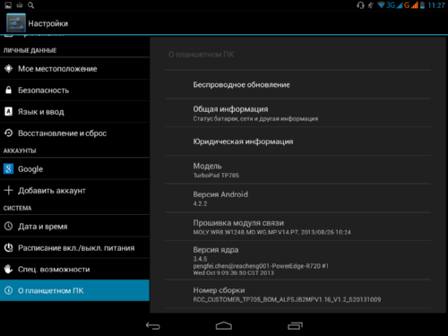 TurboPad 705 работает под управлением операционной системы Android версии 4.2.2.
