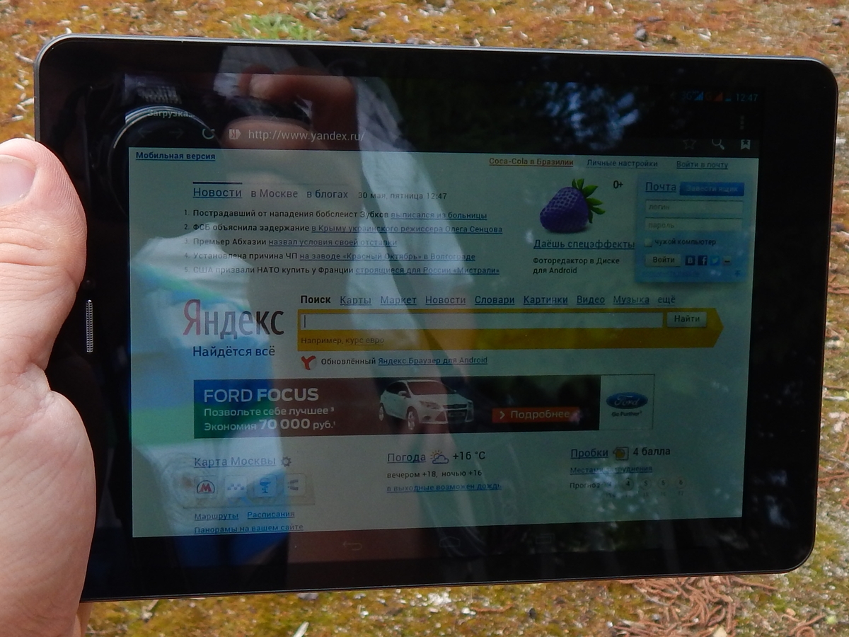 Съемка видео ведется в разрешении FullHD. Что интересно, качество камер не настолько плохое, как многие привыкли видеть в планшетных компьютерах от B-брендов. Даже фронтальная камера может оказаться пригодной для сэлфи, а не только для имитации видеосвязи в Skype.
