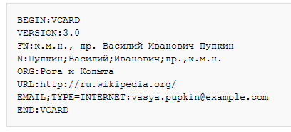 Кстати, именно vCard используется при передаче контактов по Bluetooth или другими способами.