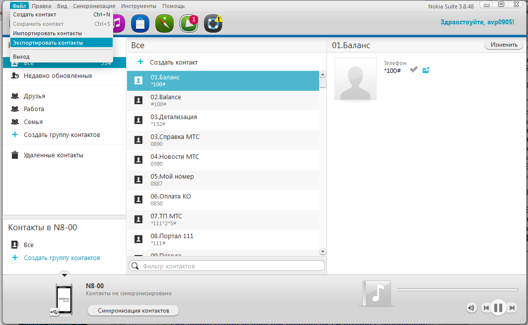 Напомню в «Nokia PC Suite» для экспорта контактов использовался компонент под названием «Nokia Communication Centre», при этом можно было выбрать, какой формат следует использовать – vCard или CSV.
