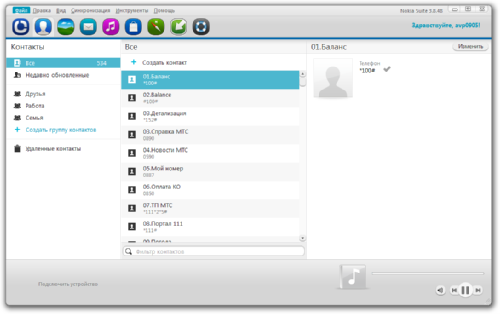 Для переходящих на смартфоны линейки Nokia Lumia с других телефонов и смартфонов Nokia удобным вариантом для переноса контактов может стать приложение «Nokia Suite». Для использования этого варианта сначала понадобится подключить к компьютеру старый телефон и синхронизировать имеющиеся на нем контакты со списком контактов из «Nokia Suite».