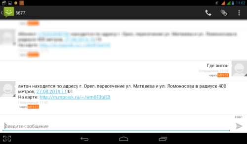 Самым универсальным способом узнать местоположение абонента является sms-запрос с текстом «ГДЕ <ИМЯ>» (<ИМЯ> - имя вашего друга, под которым он зарегистрирован в услуге) на короткий номер 6677. Ответное sms-содержит информацию о ближайшем перекрестке, дату и время определения местоположения, а также ссылку для просмотра местоположений на карте. Если искомый абонент не доступен (например, его телефон выключен), то «Локатор» сообщит его последнее известное местоположение.