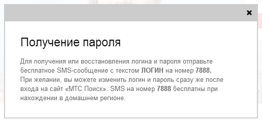 Для использования услуги «Локатор» через веб-портала «МТС Поиск», необходимы логин и пароль, единые для всех услуг компании МТС. Получить нужные авторизационные данные можно отправив бесплатное sms-сообщение с текстом «ЛОГИН» на номер 7888.