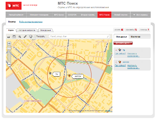 Также через веб-портал «МТС Поиск» можно управлять списками друзей (пользователей, разрешивших определение своего местоположение).