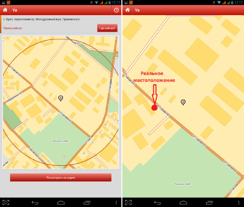Здесь же, нажав кнопку с изображением часов, можно посмотреть историю определения местоположений.