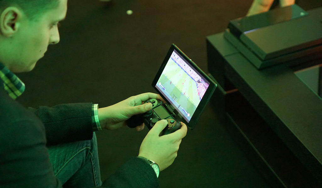 Компания выпустила специальный кронштейн с присоской, при помощи которого джойстик и смартфон собираются в единое целое. На самом деле это иллюзия – джойстик продолжает взаимодействовать с консолью, на смартфон по беспроводному каналу приходит уже финальный видеопоток, точно такой же, как и на телевизор.