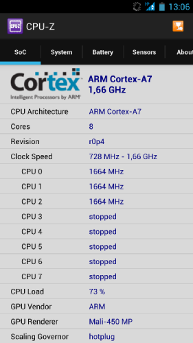 О быстродействии говорить сложно. Смартфон безусловно очень быстрый – это видно и по результатам в бенчмарках, но эта скорость… она немного необузданная. Есть ощущение, что именно эти 8 ядер, работающих в едином порыве и съедают заряд аккумулятора за считанные часы. После тестирования Fly Ego Art 2 у меня окончательно сформировалось понимание, что ничего более здравого чем архитектура big.LITTLE при организации восьмиядерных систем на сегодня не создано.