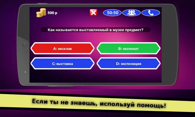 Рейтинг бесплатных викторин возглавляет приложение «Миллионер 2014», где «игрокам любого возраста» предлагается более чем на 2000 вопросов из различных областей знаний. В том числе, компьютеры и техника, еда и напитки, фильмы и телевиденье, география, история, литература, музыка, политика и экономика, спорт, цитаты, животные. Но, если ответ на тот или иной вопрос вызывает затруднения, можно воспользоваться подсказкой зала, звонком другу и 50/50.