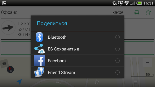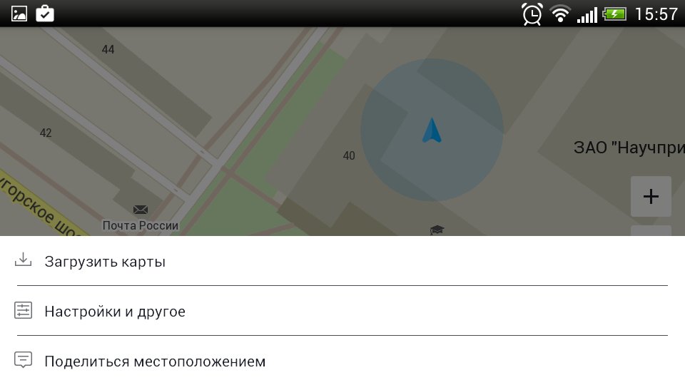 Кстати, меню программы очень лаконично - через него можно загрузить карты, изменить настройки приложения, перейти к справочной системе, оценить программу или сообщить о проблеме, а также поделиться местоположением.
