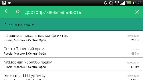 Впрочем, никто не запрещает ввести любой произвольный поисковый запрос. Что касается наполнения базы точек интереса, то в столицах, областных центрах и крупных городах с этим все довольно неплохо. Но по провинциальным городам информация не всегда актуальна.