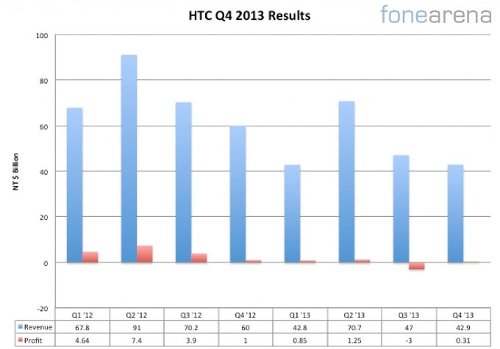 В четвертом квартале 2013 года компания вернулась к прибыльности. Впрочем, величина чистой прибыли составила немногим менее $10 млн. Хотя в последующие периоды даже скромные $10 млн чистой прибыли для HTC были хорошим результатом. Компания была вынуждена произвести реструктуризацию и оптимизировать свои расходы. И, несмотря на то, что первый квартал 2014 года принес HTС более $60 млн. убытков, в течение последующих 4 кварталов подряд компания фиксировала прибыль.