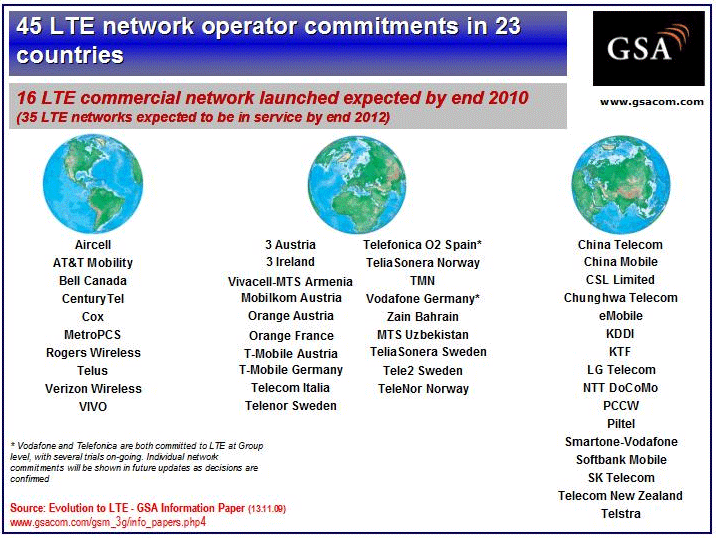 Сколько сетей LTE в мире будет работать в режиме коммерческой эксплуатации на конец 2010 года?