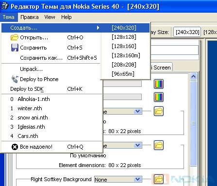 Работу стоит начинать с установки программы Nokia S40 ThemeStudio 2.2 на Ваш компьютер. После установки Nokia S40 ThemeStudio 2.2 Вам необходимо задуматься над тематикой Вашего будущего творения и в соответствии с этим подобрать все необходимые атрибуты. Это картинки нужного размера для основного фона, фона меню, календаря, плеера, иконки, мелодии и т.д.