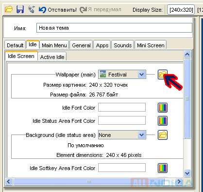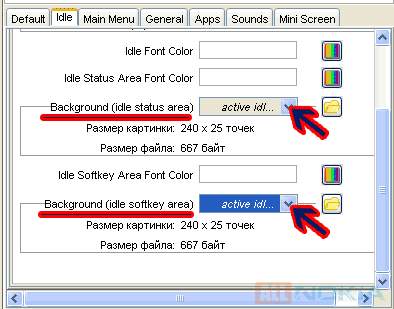 Вторая вкладка - Idle - Idle Screen. Здесь задается цвет для основной заставки на телефоне.
