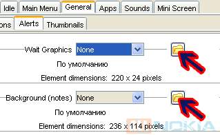 6. Сейчас займемся следующей вкладкой - General - Alerts. Здесь будем менять фон для примечаний и изображение для ожидания.
