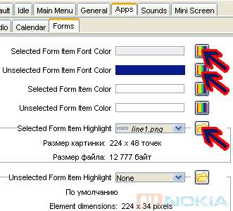 7. Вкладка Forms, в которой мы должны подобрать два цвета и вставить фон для выбранной курсором категории. По скрину понятно, где это будет отображаться в телефоне.