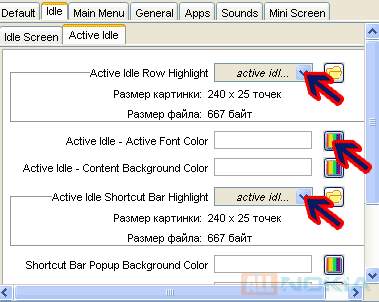 Далее активируем вкладку Idle - Idle Screen. Здесь мы вставим основную заставку, которая также будет действовать для активного режима ожидания (первая из картинок для фона, см. выше).
