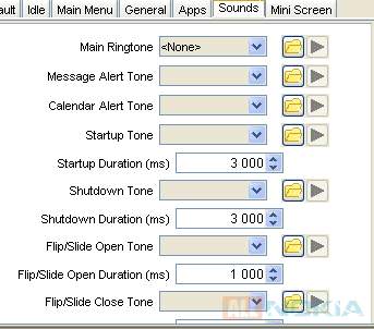 В программе также есть возможность добавления мелодий на звонки, открытие и закрытие слайдера/раскладушки, СМС. Различным звукам в теме посвящена вкладка Sounds.