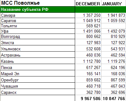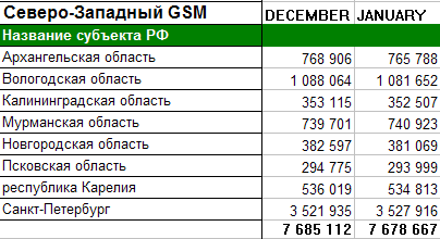 Представляем официальные данные компании "МегаФон" на 1 января 2009 и на 1 февраля 2009 года.