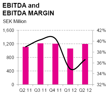 • Показатель EBITDA в целом по России составил 5,4 млрд рублей, увеличившись на 7% в сравнении со вторым кварталом 2011 года;
