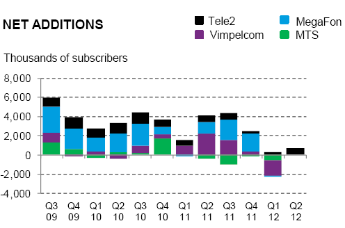 • Абонентская база компании увеличилась на 10% по сравнению с аналогичным периодом 2011 года, совокупное число абонентов в России составило 21 633 000 человек;