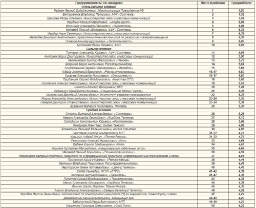 С момента появления в рейтинге Михаил Шамолин (20), утвержденный в июле на пост генерального директора МТС, демонстрирует заметное перемещение вверх рейтинговой таблицы. Однако для выхода на уровень коллег по «большой тройке» Шамолину потребуется еще длительный период.