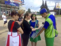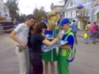 В людных местах неподалеку от Центра продаж и обслуживания компании «МегаФон» работали пары промоутеров: девушка и молодой человек. Девушка произносила речевку, вручала флаер с красочным изображением звонков и предлагала представителям целевой аудитории игру - собрать воедино пазл по картинке флаера. К заинтересовавшимся прохожим подходил промоутер с планшетом, на котором в случайном порядке располагались части пазла.