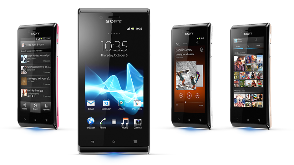 HD-экраны и модули NFC, а также классический дугообразный дизайн задней крышки - это смартфоны T, TX и V. Xperia J - доступный и стильный смартфон с большим экраном.