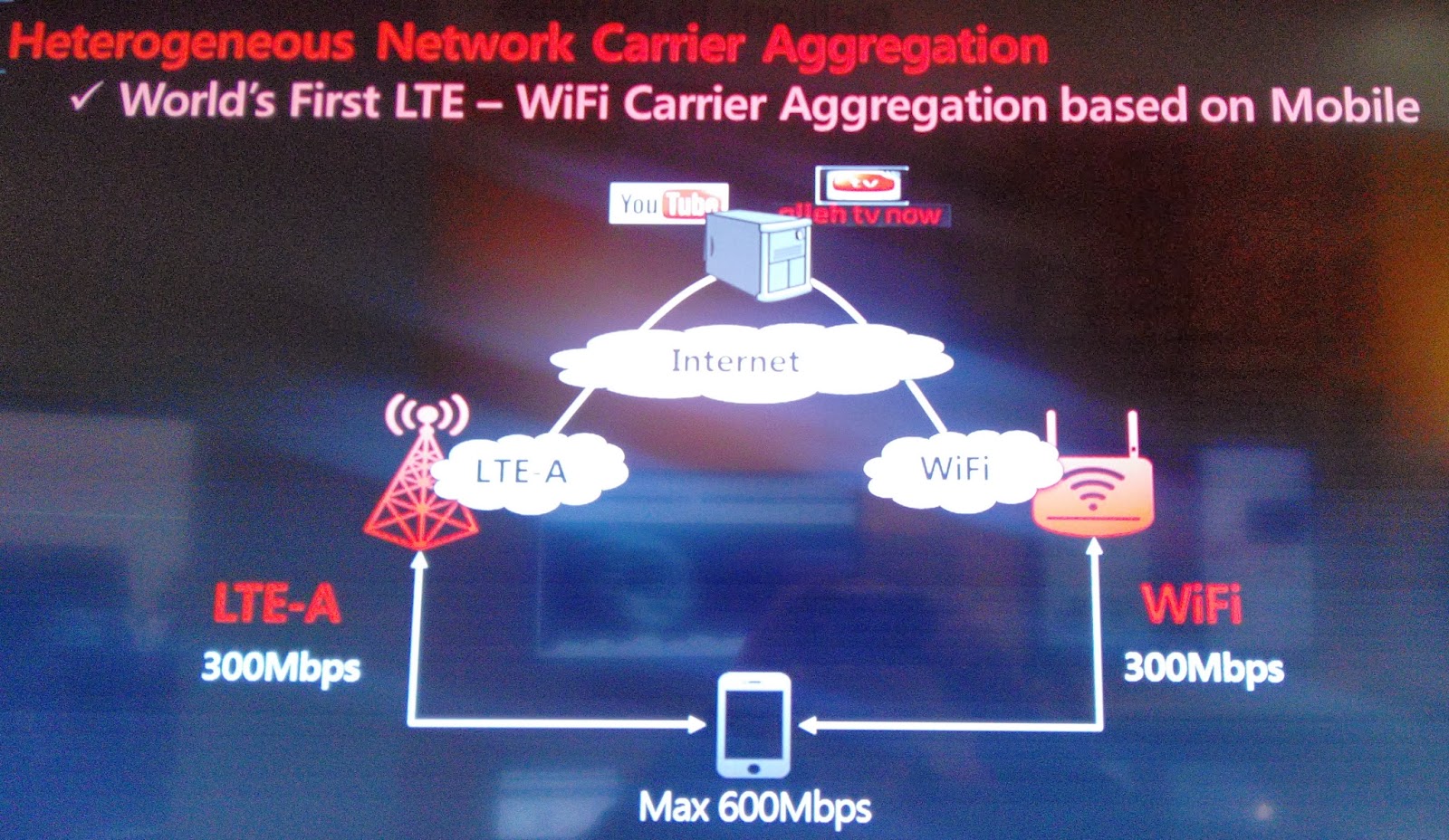 Вот, как работает смартфон в гетерогенной сети. Пользователь может сам распределить какие приложения он предпочитает использовать при доступности Wi-Fi, какие - через сеть LTE-A.