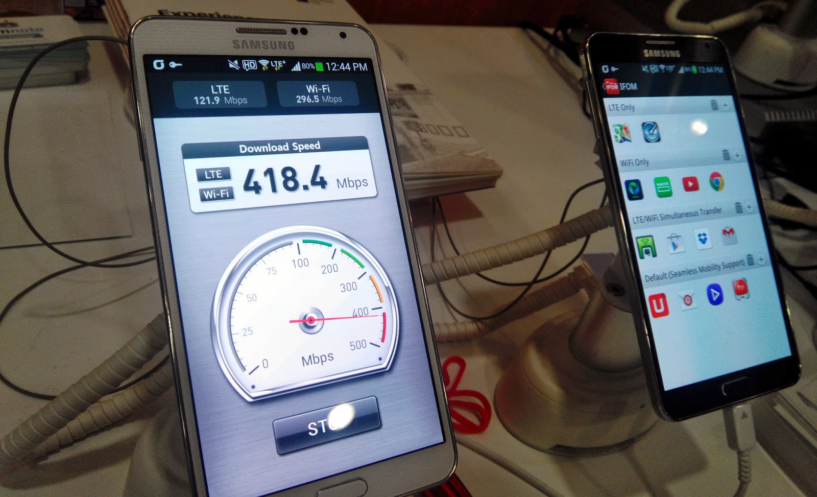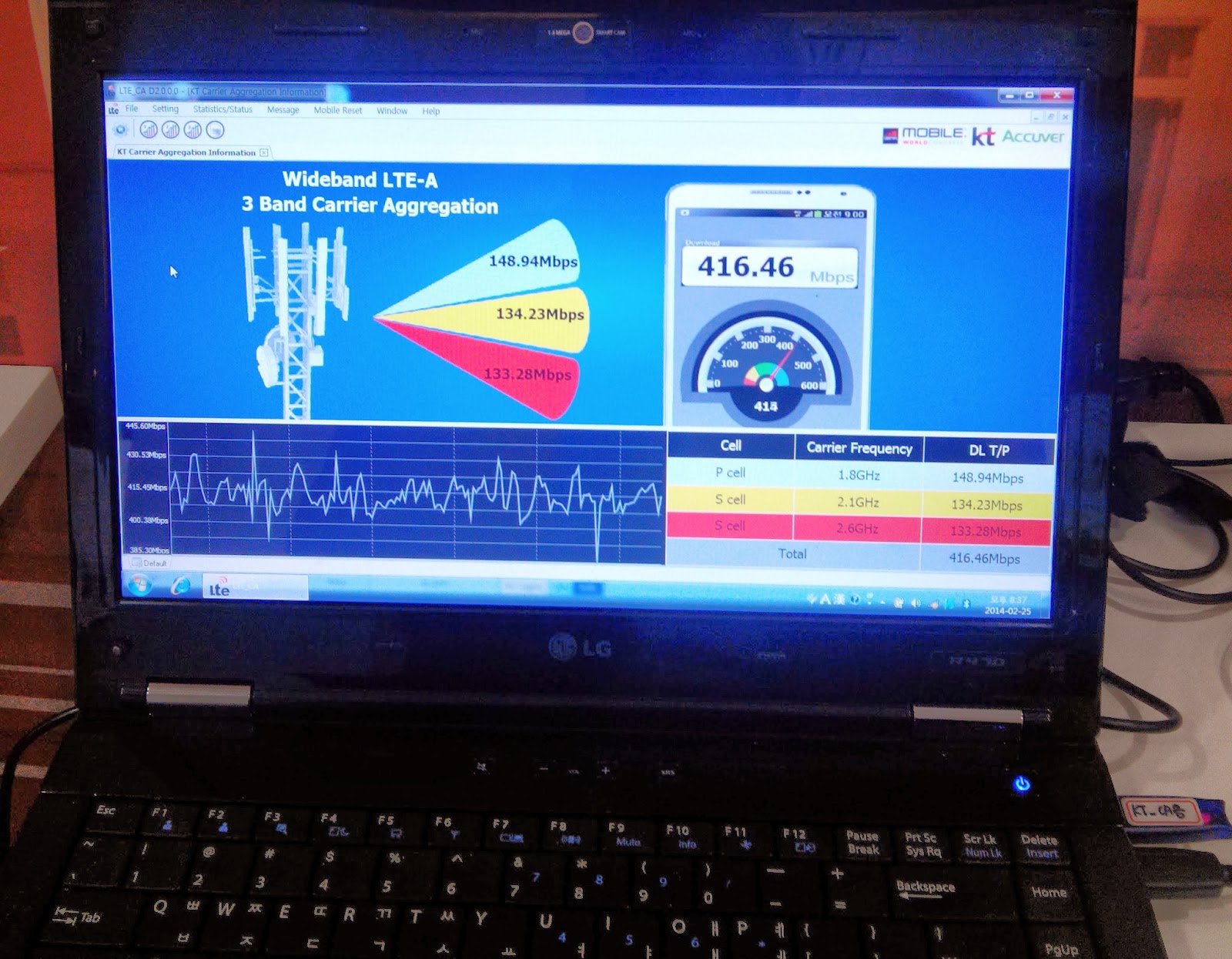 И это не шутка, это LTE-Advanced и, так называемые, гетерогенные сети. Можно ли получить на сети с ограниченным частотным ресурсом LTE 3GPP достойные скорости? Можно. И KT Corp. в Барселоне показывает, как это следует делать.