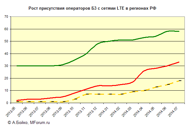 Сети LTE действуют на сегодняшний день в 69 регионах России.