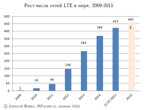 677 операторов инвестируют в LTE в 181 стране. Как ожидается, к концу 2015 года в мире будет 460 коммерчески доступных сетей LTE.