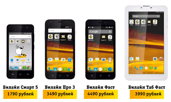 Новинки - это смартфон Билайн Фаст и планшет Билайн Таб Фас с поддержкой 4G/LTE. Кроме того, Билайн обновил дизайн и характеристики 3G смартфонов Про и Смарт - встречаем новые модели Билайн Про 3 и Билайн Смарт 5.