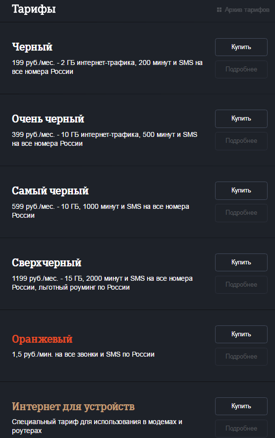 Можно заметить, что оператор не корректировал "тяжелые" тарифы - Самый черный, Сверхчерный и Интернет для устройств не подвергались корректировке.