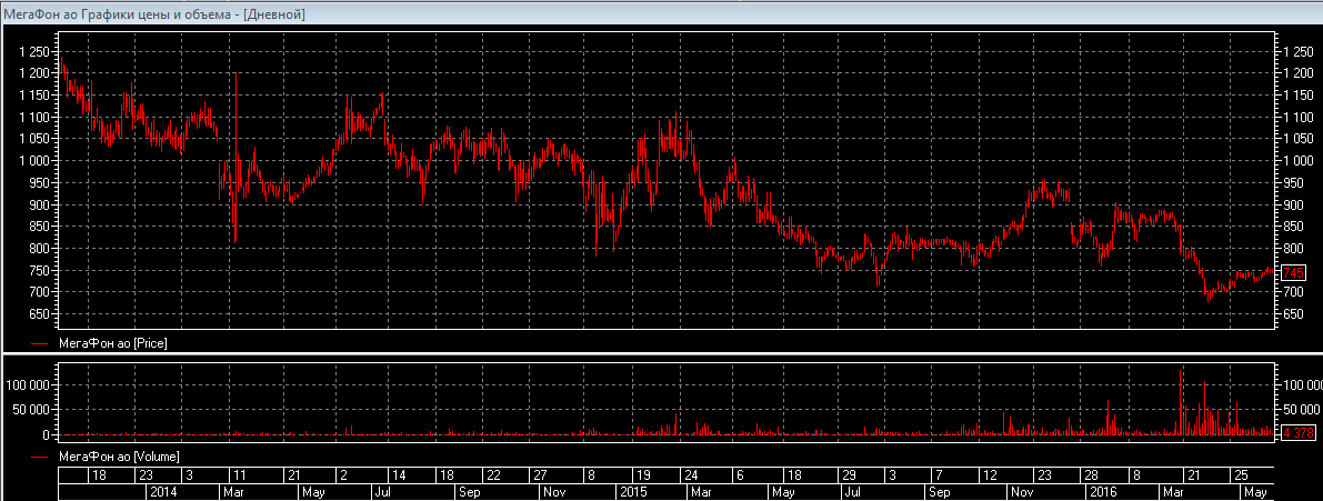 Будет ли так и дальше? Не знаю. Если бы не смена гендиректора МегаФон, можно было бы прогнозировать дальнейшее снижение курсовой стоимости акций компании. Сейчас рынок позитивно реагирует на смену руководства и есть шансы, что новая команда постарается вернуть компанию на правильный вектор развития, что может привести к росту курсовой стоимости акций.