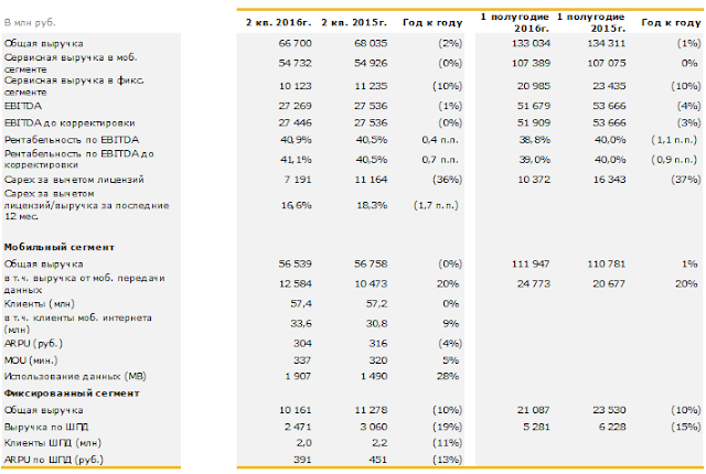 Давайте подумаем, что нам показали. Сравнивать будем с тем, что у нас уже есть по 2q2016 - с результатами МегаФона.