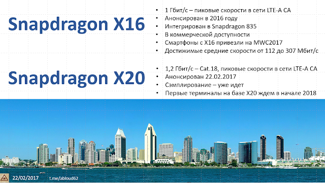 Посмотреть смартфоны Gigabit LTE можно будет на MWC2017. Snapdragon X16 был анонсирован примерно год назад. И поскольку именно этот модем интегрирован в мобильную платформу Snapdragon 835, в 2017 году можно будет увидеть немало смартфонов на базе чипсетов с этим модемом и поддержкой гигабитных скоростей в сети LTE.