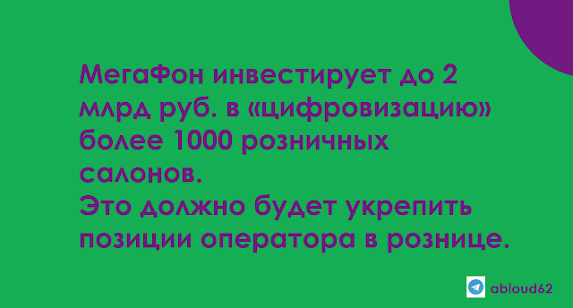 За новостями телекома и IT удобно следить в телеграм-канале abloud62. Телеграм-трансляции читайте в канале @abloudRealTime.