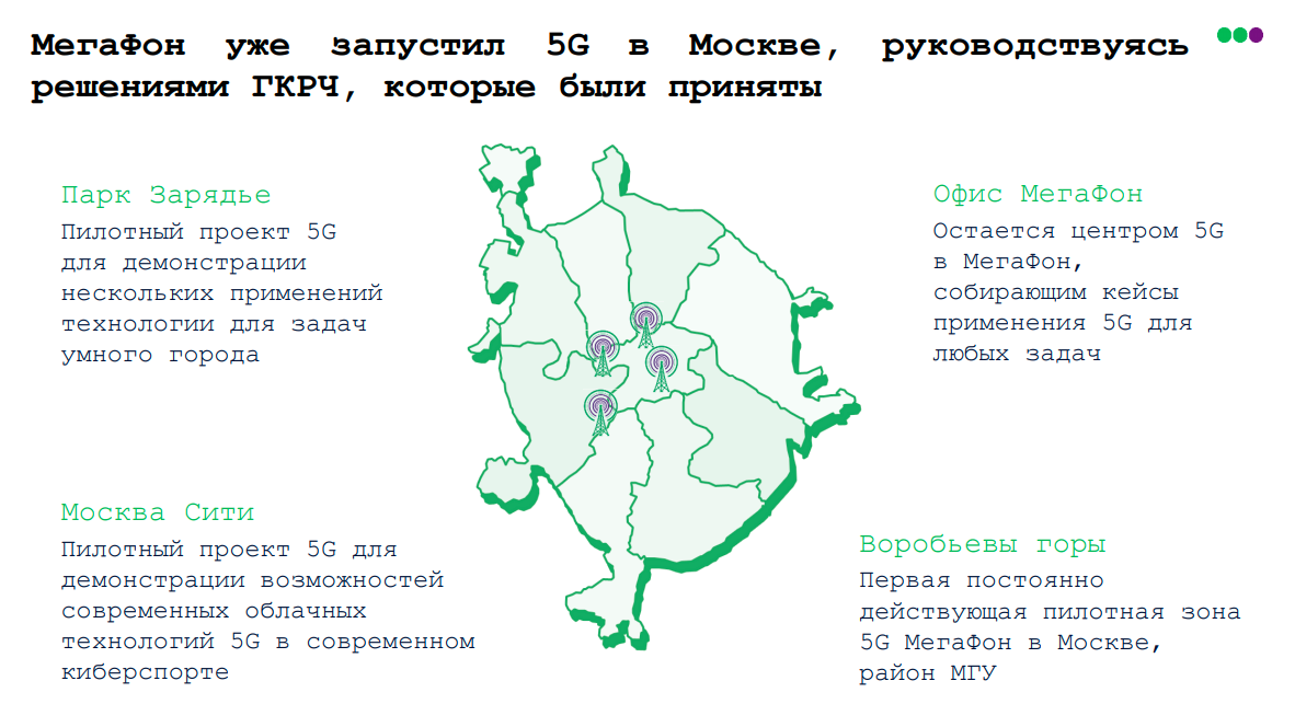 Свои достижения мы многократно освещали, писали о них. На слайде перечислено, что мы показывали. В Москве у нас запущены пилотные зоны 5G, и мы сейчас ориентированы на создание сервисов, которые могли бы работать на сетях 5G.